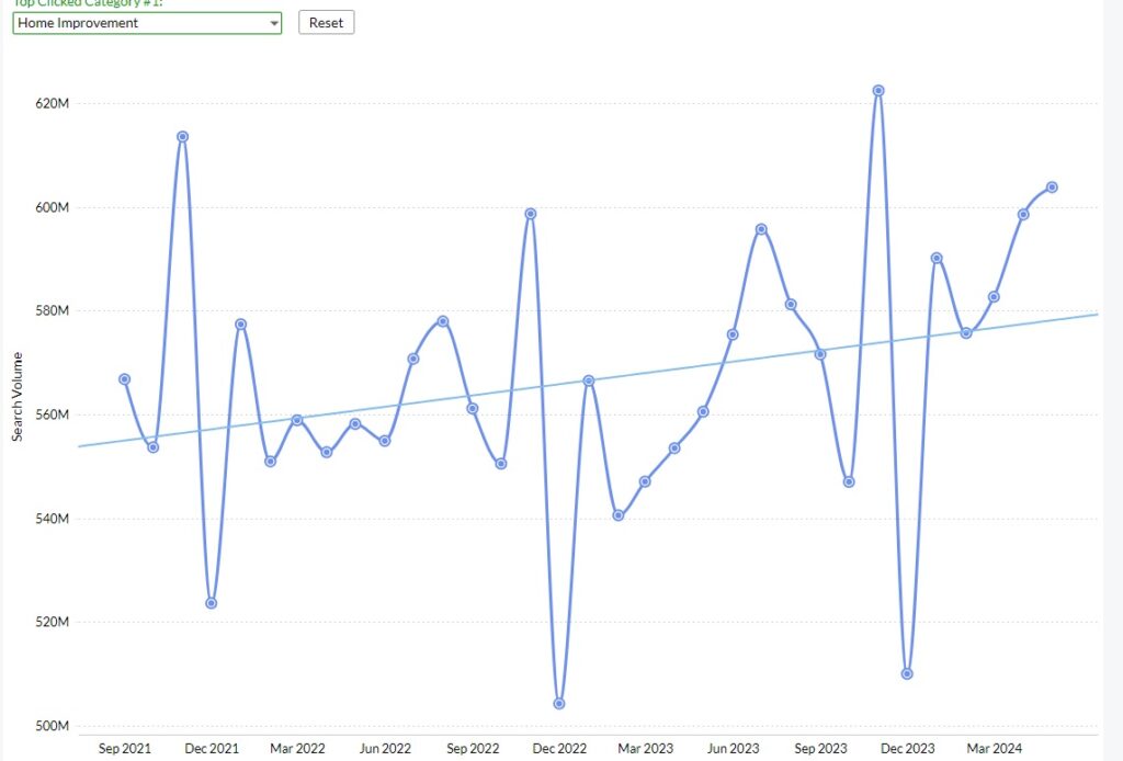 Take a look at this trend chart for the Home Improvement category. Do you see that it has a big peak in November, a big dip in December, another peak in January, and yet another peak in July/August?